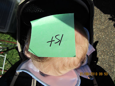 Because the weather was so good - it worked well that we didn't have to put Jack in the car & crush the fragile gown - so he went in the pram & Darren walked him to the church.